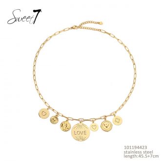 Stainless Steel, Schelp Stainless steel is een sterk en duurzame materiaal voor het maken van sieraden. De Kleur is van naturen grijs zilver en wordt vaak goud geplateerd in een kleur van 14 of 18 karaat goud als kleur indicatie. Om de Goude kleur te geven aan stainless steel gaat het product in een goud kleurig badje met een kleine percentage goud voor zijn mooie duurzame kleur. Let op de kleur kan vervagen door een te hoge pH-waarde van de huid. Om de kleur optimaal te houden adviseren we om de sieraden niet te dragen tijdens het sporten, zwemmen, zonnebaden, douchen, in de sauna of tijdens gebruik van cosmetische artikelen om verkleuring te voorkomen. Toch gebeurd? Geen probleem, de sieraden kunnen er even tegen, maar langdurige blootstelling zorgt er voor dat de beschermlaag sneller los laat en de kleur op den duur vervaagd.